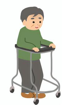 今日は、80代の大腿骨を骨折された男性患者さん。今までは手術したところが痛くて歩くのも平行棒内で往復歩くことがやっとでしたが、初めて歩行器を使ってリハビリ室1周(60m程度)歩けました。