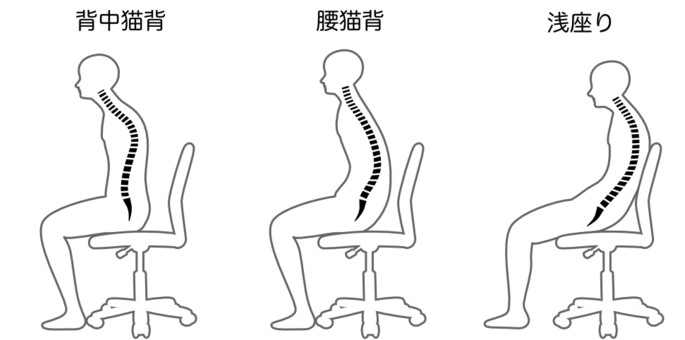 ⇒背もたれに頼ると、楽ですが猫背になりがち・・・