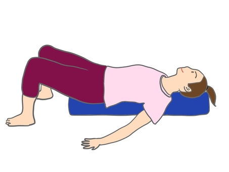 最初はハーフポール上で姿勢を保持するにも苦労しておられましたが、徐々に安定した保持が可能となり、現在は円柱型のストレッチポール上に寝てもらい同様の練習を行っています。