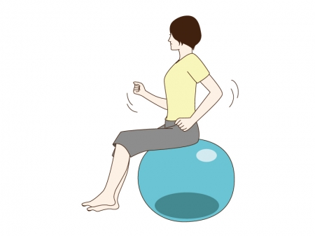 次に実際の自転車のサドル座位に似た環境を作った上でバランス能力を養う為、バランスボール上で座位をとり姿勢を安定させる練習を行いました。