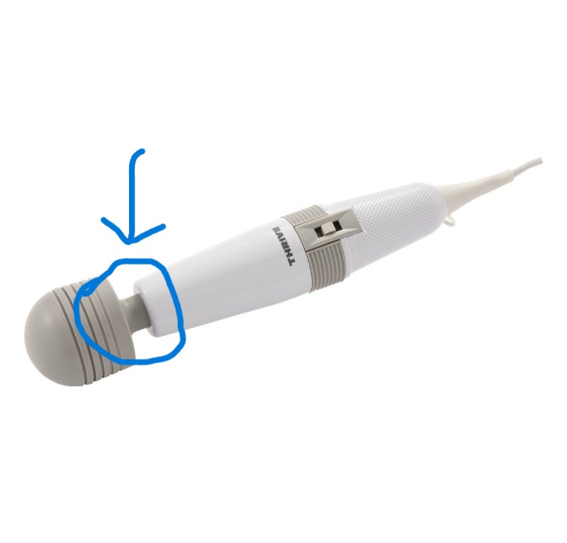 A:最近の研修会に参加した際の講師の方の回答では、THRIVE(スライブ)ヘッドの首の部分が少したわむ程度の圧で押し当てるのが良いという事でした。